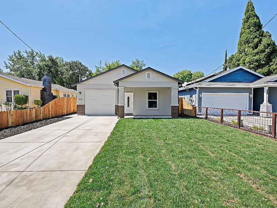 New Construction! Welcome to this beautiful brand new home in the trendy Colonial Heights! This absolute charmer is built in 2025 and combines modern ease of living and elegant simplicity. As you enter the home discover a flowing layout with great room concept, a modern kitchen located in the heart of a home which is perfect for entertaining. Home features four bedrooms and two bathrooms, each with double sinks. Inside laundry room, and access to the private back yard through the french doors from the kitchen and master suite. Home is contemporary styled with interior paint in soft palette, stainless steel appliances, including refrigerator, colonial primed baseboards, recessed lighting, wide plank laminate flooring, custom tile, new solar equipment, front and rear sprinkler system, and new lawn in front and back. This is a truly great opportunity to own a brand new home in Colonial Heights neighborhood located just minutes from the UC Davis Med Center, Midtown, and transportation.