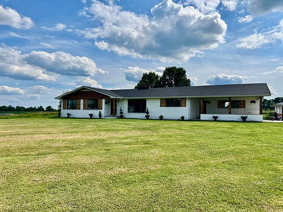 Welcome to this beautifully renovated 4-bedroom, 2-bath lime-washed brick home, offering 2,100 sq ft of modern comfort on a secluded 1.3-acre lot with serene country views. The spacious family room features a double-sided wood-burning fireplace, flowing into a large kitchen with custom cabinetry, granite countertops, and a unique brick backsplash. The home also features an open dining area, a large utility room, a 24x16 attached carport, and a 1,772 sq ft unfinished basement with endless potential. The kitchen appliances, as well as the washer and dryer, are included, making this home truly move-in ready.