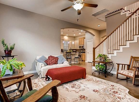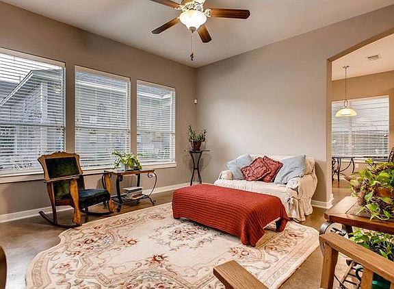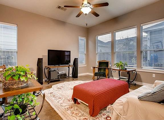 Gorgeous two story Austin home. Stained concrete flooring throughout lower level. Quaint kitchen complete with SS appliances, center island w/ storage galore. French doors lead to office/hobby room. Kitchen is open to family room, great for entertaining! Upstairs has cozy master bedroom complete with wooden floors. Beautiful master bath with garden tub & separate shower. Thoughtful fixtures such as elegant sink really give this place a nice touch. Beautiful views of sunset from balcony. Courtyard in back!