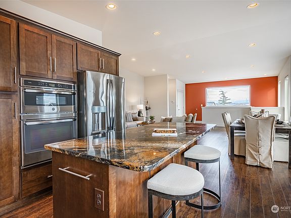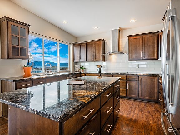Water and North Cascade Mountain View, Main floor living area bathed in sunlight, Built in 2017, 4 bedroom, 3.75 baths, plus private office, 3300 sq. ft. 3-level home with elevator, granite counters, engineered hardwood floors, elegant finishes, lots of closets, main floor living room, 2nd level family room, Central air conditioning, three decks give home lots of outdoor living space to enjoy the view and sunny days. Two seperate entrances. Unbelievable heated 6-8 car garage for all the toys(1700Sq.Ft.), with 1/2 bath, located 1/2 mile from salt water marina, lots of parking. Sandy Point Community Membership available if you choose. Amenities include, marina, golf course, clubhouse, swimming pool, sports courts & organized activities.
