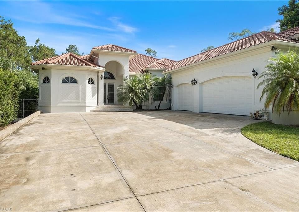 Welcome to Florida living at its finest in this exceptional 3-bedroom plus den home that perfectly balances comfort and style. Built in 2015, this 2,785 square foot residence sits on a generous lot west of Collier Boulevard, offering the ideal blend of convenience and tranquility. Step inside to discover travertine tile flooring flowing throughout, complemented by impact windows that provide both security and energy efficiency. The heart of the home features a custom kitchen showcasing solid wood cabinets, stainless steel appliances, and elegant backsplash details that would make any chef smile with delight. The primary bedroom serves as a true retreat with his and her closets, sophisticated tray ceilings, and an impressive ensuite bathroom featuring dual sinks, a jetted soaking tub, and a walk-through shower that feels like a personal spa experience. Entertainment reaches new heights with the screened lanai – a massive outdoor space perfect for year-round enjoyment. The saltwater pool and stand alone spa create a resort-like atmosphere in your own backyard, while the fully fenced property ensures complete privacy. Practical luxury continues with a three-car garage that's fully air-conditioned, plus two brand new A/Cs (July 2025) and fresh exterior paint. The concrete driveway, lined with stately palms, sets the tone from the moment you arrive. Located in a highly desirable area off Pine Ridge Road, you'll enjoy easy access to various dining, entertainment, shopping and healthcare options. This home delivers the complete Florida lifestyle package.