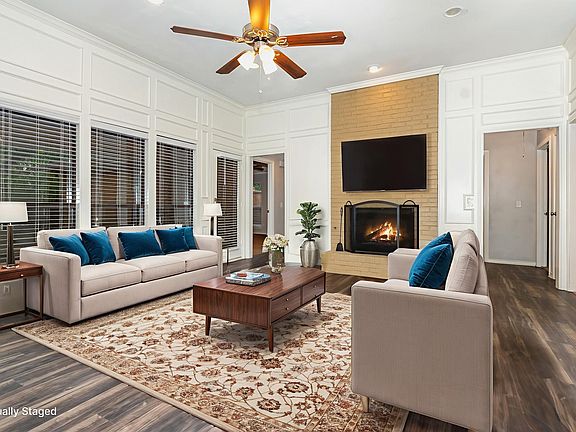 This inviting property offers a bright, spacious living room with a brick fireplace, a separate dining area, and a cozy family room. Enjoy granite countertops throughout, updated fixtures, and a primary suite featuring an upgraded shower and a relaxing garden tub. Each bedroom includes a ceiling fan for added comfort.