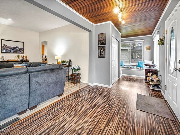 This is the one you have been waiting for! Welcome to this lovely move-in ready home with 4 bedrooms, 2 full bathrooms, and charm and character throughout. As you enter through the front sunroom you will love the bright and open first floor. Natural light flows through this cozy space and right into the large family room featuring a tiled fireplace with a mantle and recessed lighting. The family room flows right into the wonderful dining area which is open to the kitchen – perfect for entertaining! The kitchen provides ample workspace, wood cabinets with tons of storage, and stainless steel appliances. Off the kitchen is a mudroom area that also leads you out to the huge backyard and awesome patio space. On the first floor are two spacious bedrooms and a full bathroom. Upstairs you will find the primary bedroom as well as a fourth bedroom complete with custom built shelves and storage (2022) and another full bathroom, as well as bonus storage spaces. The basement includes a large rec room with a bar area, a flex room with a closet that could be finished for an extra guest room, playroom, gym, or office, and a laundry and storage room. The backyard is fully fenced for privacy with patios and an abundance of yard space – what a gem! The roof and gutters were just replaced in March 2025 and central air conditioning was added in 2022! This home is the one, and is in such a great neighborhood close to everything!