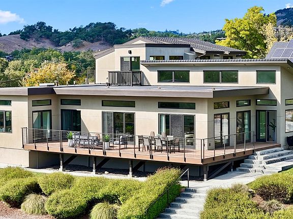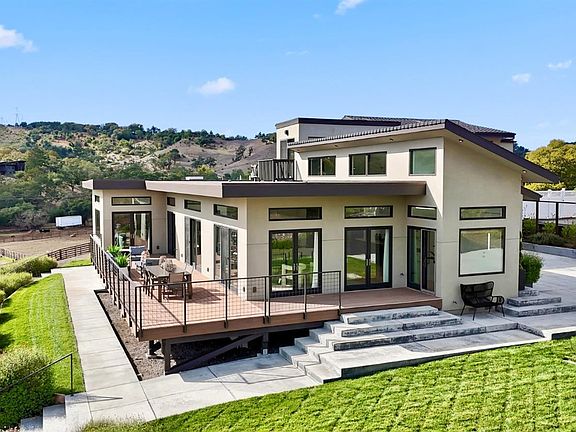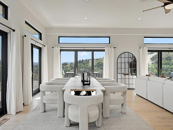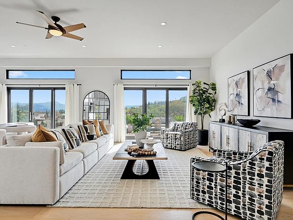 Discover the serene luxury of Riebli Valley...peaceful and rural, yet so close to fine dining, Oliver's Market, a performing arts center, golf, and beautiful regional and state parks. This impressive modern home offers an airy, open layout with tall doors and ceilings, attractive engineered wood flooring, and walls of black-framed windows that fill the space with natural light. The exceptional kitchen showcases quartzite countertops, Omega cabinetry, and premium appliances...ideal for both everyday living and entertaining. Primarily single level, the home also includes a spacious room upstairs for guests, a media and game room, or creative pursuits. Multiple decks invite outdoor enjoyment and feature lovely valley and hill views. The gently rolling setting offers space and sunlight for a possible hobby vineyard, garden, or other outdoor amenities. The oversized garage has room for a workshop and the ample parking is great for accommodating guests and loved ones for large gatherings. This property gracefully captures the comfort, quality, and relaxed elegance of Sonoma County Wine Country living. Don't miss out on it!