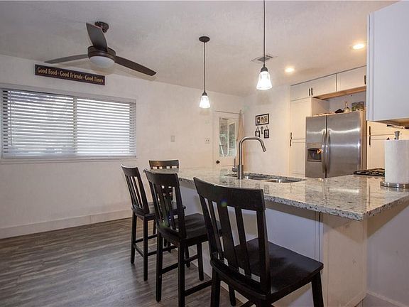 Lot's of room and updates, in a very affordable price range! The kitchen has been completely remodeled, including new kitchen cabinets, granite counters and stainless steel appliances. Efficient design was in mind in the kitchen, allowing you to cook, eat and entertain with ease. Lot's of cabinet and storage space, and a perfect eat-at bar to openly divide the living room. On top of four bedrooms and three full bathrooms, there's a separate space for an office or kids play room. All bathrooms have been improved with new tile, fixtures and vanities. Mature pecan trees in the front and back provide beautiful shade in the summer, and the backyard is fenced, and the perfect size for kids and pets. Located in a quiet neighborhood close to I-35, shopping and more!