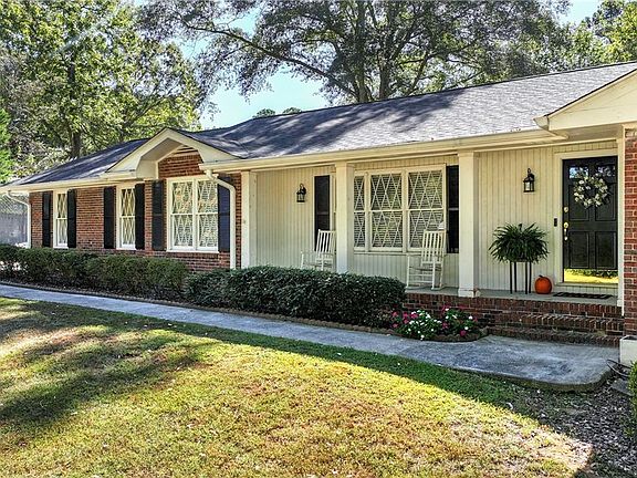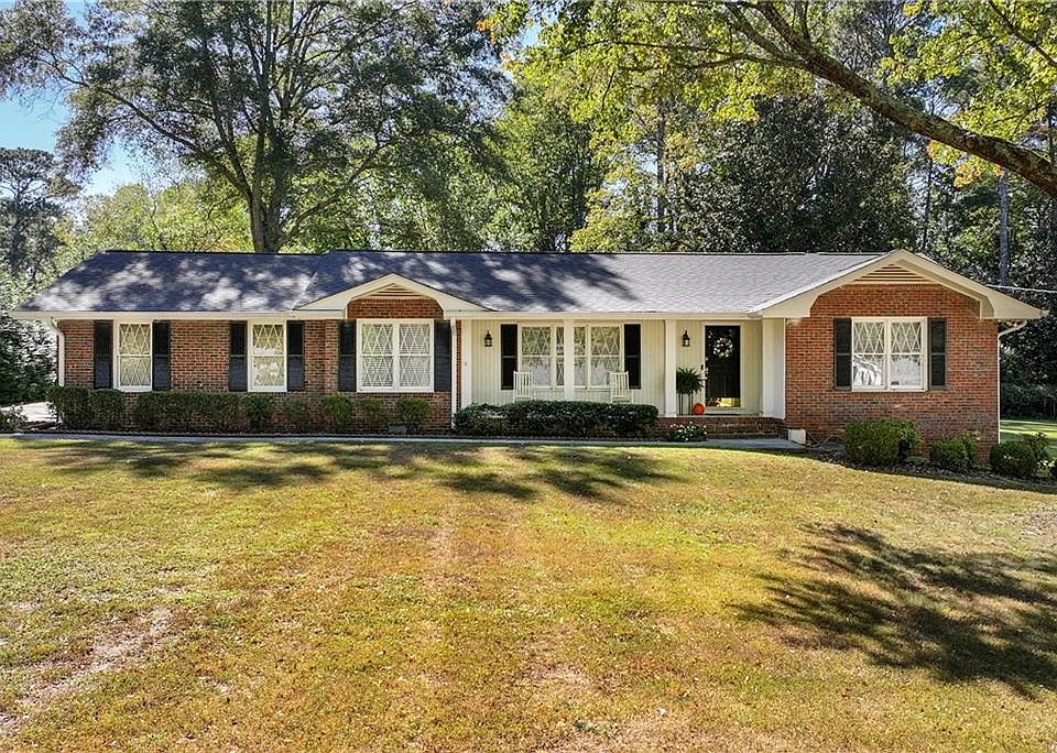 Beautiful 4-sided brick ranch on a spacious .75-acre lot in Tucker, just minutes from downtown, I-285, I-85, and Atlanta. A charming rocking chair front porch welcomes you home. From the front door, an entryway leads into the den/dining room combo, perfect for entertaining, while the living room features wood-beamed ceilings, built-in cabinets, and a cozy brick fireplace. The kitchen offers white cabinets, a breakfast area, and a convenient adjacent laundry space. Three bedrooms and two full baths include a master with a stand-up shower, and two additional bedrooms share a bath with a large vanity and a separate tub/shower area. Relax on the large screened-in porch overlooking the flat backyard, enjoy generous front and back yards with stunning azaleas in bloom, and take advantage of a backyard shed/garage and extra storage off the two-car garage. Ideally located near downtown Tucker, with restaurants, coffee shops, breweries, and more, this home perfectly blends comfort, space, and convenience!