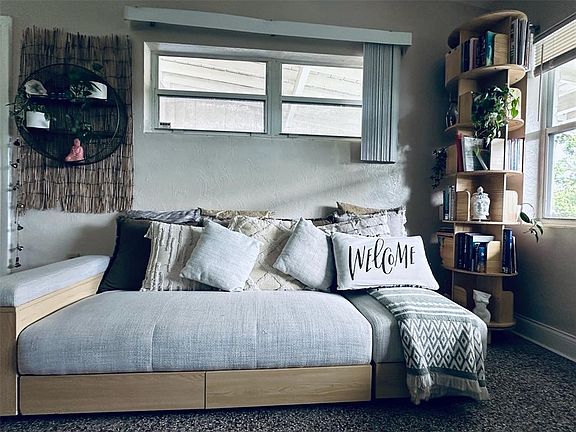 Home Sweet Home! Cutie-pie 3 bedroom 1 bath home with terrazzo & tile flooring, updated bath. High ceilings in kitchen and eat-in dinette area with lots of cabinet space for the chef! Cooktop, oven and newer refrigerator are included. Airy 1 carport and oversized parking pad. Located in a small quiet neighborhood, tucked away from it all but SO close to everything! Enjoy coffee or feed the morning birds from your covered front porch, or just wave to the neighbors. HUGE fenced backyard with open patio and storage shed. Separate laundry room with space for full sized washer and dryer (NOT included). And you can forget your lawnmower - Lawn Care IS included. Located near bus routes, shopping, EZ commute to employers and schools. No smoking, please! Owner prefers no pets but will consider. $75 non-refundable application fee for 1st adult, plus $25 for each additional applicant over 18 years old . Additional $27 (non-refundable) background check required for each applicant over 18 years old. Proof of verifiable income, full first months' rent plus last month's rent plus security deposit required before move-in.