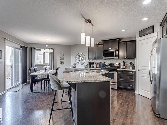 Welcome to the desirable neighborhood of Chappelle! This fabulous, FULLY FINISHED, 1700+ sqft 2-storey is located on a quiet street and presents like new! Open concept main floor w/an abundance of natural light, beautiful kitchen w/large island, hardwood floors, premium cabinetry, granite counters, and s.s. appliances. Great living area, dining nook, 2-pc bath, and laundry/mudroom. Upstairs you will find the spacious primary retreat w/4-pc ensuite and walk-in closet, 2 additional bedrooms, additional 4-pc bath, and huge bonus area w/corner gas fireplace. The fully finished lower level offers a HUGE rec/gym area, 2-pc bath, and storage space. Large deck, full landscaping, double attached garage, and more! Located close to schools, walking trails, and all other major amenities. A turnkey home in one of Edmonton's premier family neighborhoods!