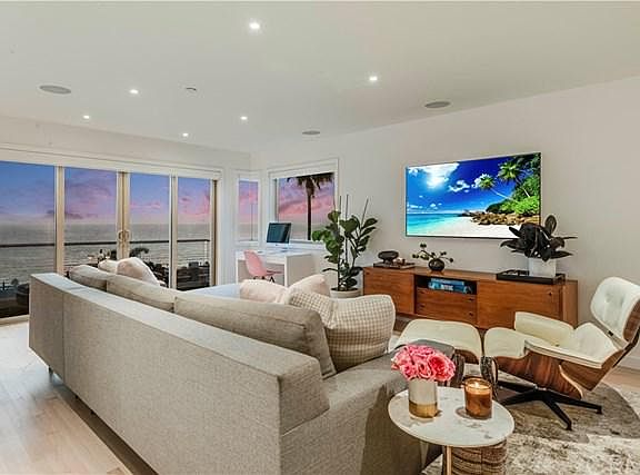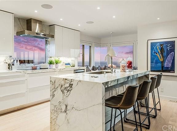 VIEWS VIEWS VIEWS. Completely renovated in 2017, this beautiful modern haven has unparalleled views of the Pacific from Palos Verdes to Malibu. You won't find a better view in Manhattan Beach! Set over 3 levels, all with ocean views, this dream house is turn key ready. Upstairs, find unblockable sand and ocean views and you are met with a custom kitchen with Miele appliances, Sub Zero refrigerator and wine fridge.The built in kitchen nook with extra storage space is the perfect spot for meals and check out the surf. Massive ocean views from entire top level!A stunning, new showcase powder room upstairs will impress all your visitors! Custom blinds with remote controls throughout the house so no getting up from the couch! The new custom hardwood floors complement the incredible light that comes through in this house. On the second level is the master bedroom with balcony, again with more ocean views from your bed. But perhaps the showstopper of this level is the remodeled master bathroom with complete ocean views from the master shower. You cannot wake up on the wrong side of the bed! Opposite the master is a nursery with renovated bathroom or study.Downstairs on the garage level is a third bedroom and bathroom, completely remodeled. Great as a guest quarter or kid's bedroom, again with ocean views. Already wired smart house with surround sound and Lutron custom lighting Three extra parking spots leased from Chevron for a total of 6!