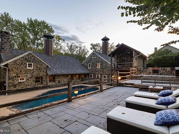 Discover a historic gem in the coveted Radnor Hunt neighborhood. A family compound property, formerly Echo Valley Farm which is part of the prestigious William Lewis Farmstead. This unique property has graced the Episcopal Academy House Tour, showcasing the best of the Main Line. This enchanting property sits on 1.83 picturesque acres. Housed in the original Granary, the gated entrance to the main residence features a sun drenched garden patio, gourmet kitchen with secondary butler’s kitchen, luxury stainless appliances, refinished soapstone counters, fresh paint and original hardwood floors, leading to a captivating living room with exposed beams. The first floor master suite features vaulted ceilings and a marble bathroom with a jacuzzi tub. The second and third levels are a blank slate for the new owner to customize their perfect floorplan with a natural stone wood burning fireplace, large windows, a full bathroom and space for 2-3 bedrooms. The renovated barn has been converted into a majestic English style pub and gaming area. Above the barn there is a huge storage space with full bathroom, potential to renovate this space to create an artist-style loft. Walk across the wood bridge to the secluded, refinished resort style pool with built-in kitchen and outdoor shower. The pool deck sits on an elevated flagstone patio wrapped by gorgeous natural stone walls - perfect for hosting events and family gatherings. The property also includes a large office space adjacent to the barn with guest house or in-law suite above. The guest house offers a versatile living space with a full kitchenette, living room and bedroom. There are also two lovely updated one bedroom guest cottages. Additional features include new HVAC, newer roof, natural gas for cooking and heating and public sewer. The total square footage of all dwellings is between 11,000 - 14,000 sqft. The property seamlessly combines old-world charm with modern amenities just minutes from Episcopal Academy, White Manor country club and Downtown Wayne. Experience the essence of horse country along the prestigious Main Line. Your luxury lifestyle awaits – schedule your private viewing today!