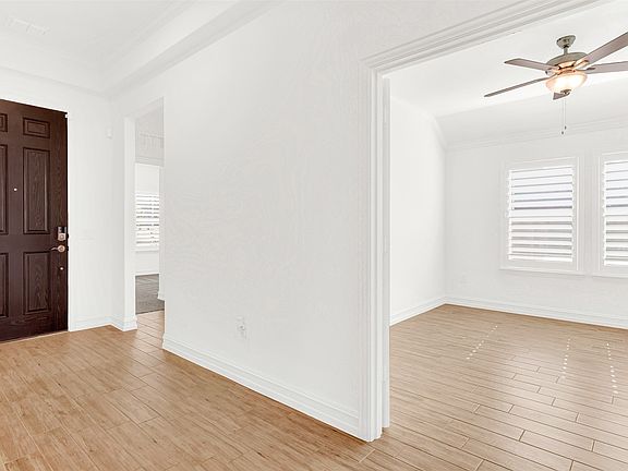 A Perfect Gem Of A Home Awaits You With Bright Open Floor Plan And Soft Contemporary Accents That Will Match Any Decor! Pristine Home In The Highland Lakes Community Offers Plantation Shutters, A Separate Office Space With Built-In Cabinets, Formal Dining Room (Or Second Living Area) And A Beautiful Backyard That Overlooks A Wooded Creek Area! The Floorplan Is Meticulous In Design With A Study (Or Fourth Bedroom) Set Apart With French Doors, A Spacious Main Room That Encompasses The Gourmet Kitchen, Breakfast Nook And Living Room, Plus A Primary Suite That Will Be Your Cozy Retreat After A Long Day - With A Spectacular Private Bath: Jetted Tub, Large Shower, Double Vanity And Large Walk-In Closet. The Exquisite Kitchen Has A Large Center Island With Granite Counters And Light Wood European Style Designed Cabinets. Preparing For The Holidays Just Got Easier With The 5 Burner Gas Cooktop With Vented Hood Next To The Built-In Oven And Microwave. Both The Breakfast Nook, Living Room And Primary Bedroom Offer Relaxing Views Of The Backyard And Wooded Creek. Two Additional Bedrooms Share A Full Bath. You'll Enjoy Doing Laundry In The Spacious Laundry Room. The Community Offers A Clubhouse, Fitness Center, Pool, Parks, Walking Trails And More! Highly Rated Prosper Schools! ADT Security Available, Container Store Pull Out Drawers, Fireplace Console, And a Mudroom Makes This House A Dream!