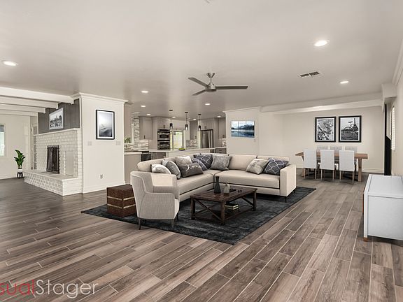 Don't miss this rare opportunity to live in this stunning, one-of-a-kind mid-century modern remodel in the heart of Arcadia Lite! Perfectly positioned on a massive corner lot with exceptional curb appeal, this beautifully updated home offers the perfect blend of style, space, and location- just minutes from the best that Central Phoenix has to offer. This is one of the most sought-after neighborhoods in Phoenix. Step inside to a spacious open-concept floor plan that seamlessly blends timeless charm with modern luxury. The welcoming great room flows into a formal dining area featuring an elegant white brick fireplace perfect for entertaining.