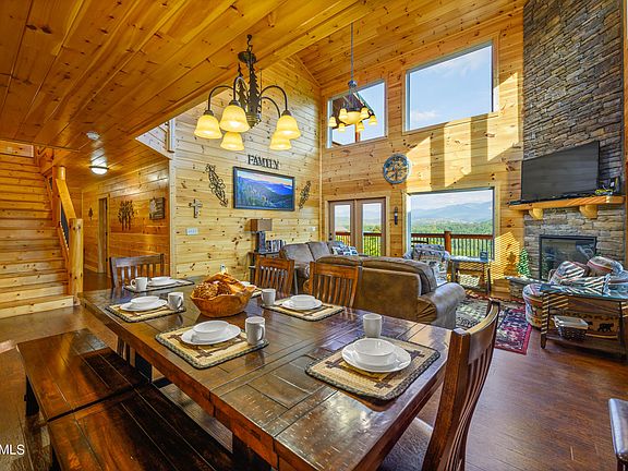 Tranquility View of the Smokies! 2021 Income $192,642.75! 2022 193,159.38! As of April 19th already has $142,000 on the Books! 4103 Sqft! Indoor Pool! 5 Bedrooms & 5 1⁄2 Baths! Picturesque Sherwood Forest Resort! Theater Room! Walls of Glass! Spacious Floor Plan! Sleeps 16 Guests! Three Levels of Decking! Pristine Décor! Centrally Located between Pigeon Forge & Gatlinburg! Enter a massive open floor plan and immediately be taken away with amazing views of The Smokies. Kitchen, Dining, and Living Room can accommodate all 16 guests. While enjoying each other your eyes gravitate to a two-story stacked stone gas fireplace. Double door entry to a full-length deck off Living Room. Main Level offers two bedrooms and two bathrooms. Master Bedroom has access to deck as well. Upper level has a loft with gaming and additional sleeping while still enjoying an incredible view and access to full bath. There is two bedrooms and two bathrooms on 2nd floor. Basement area has 5th bedroom, Theater Room, Laundry Room, Wet Bar area, & Indoor Pool for enjoyment. Next door additional 5 bedroom and 5 ½ baths available for sale with combined income for 2021 $348,372.85 (4113 cabin went online in April of 2021). Combined income 2022 $370,336.38. As of February 2023, both cabins have combined bookings $180,000.