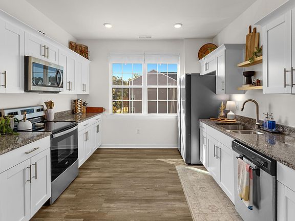 Better Than New—Only 2 Years Young! This Beautiful and Customized 3BR, 2.5BA, Bonus room, 3-story townhome (2,131 sq. ft.) with Attached Garage + EV Outlet Offers the Perfect Blend of Style, Functionality, and an Unbeatable North Durham location. Step Inside to Find LVP Flooring, Freshly Painted Rooms with Upgraded Finishes and Inviting Colors that Create a Warm, Move-in-Ready Atmosphere. The Open-Concept Main Floor Features a Spacious Living Room, Dining Area, and a Large Kitchen with Granite Countertops, Stainless Steel Appliances, Pull Out Trash Can Cabinet and a Private Deck Featuring A Vibrant Plant Wall, Overlooking Protected Woods—Ideal for Entertaining or Relaxing. Upstairs, the Primary Suite Features a Wainscoting Accent Wall, a Private Ensuite Bath and Walk-in Closet, with 2 Additional Bedrooms (including another walk-in closet) Plus a Second Full Bath, Linen Closet and Laundry Room Conveniently Located Down the Hall. The Ground Floor Offers a Versatile Flex/Bonus Room with Access to a Covered Patio and Backyard, Perfect for a Home Office, Gym, or Media Space. This Level Also Includes a Large Storage Closet and Interior Garage Access. Community Walking Path, Pavilion & Guest Parking. All Just Minutes From Duke Hospital, Duke University, and Downtown Durham—With Quick Access to Shopping, Dining, and Major Highways. Don't Miss This Chance to Own a Modern, Low-Maintenance Home in One of Durham's Most Convenient and Desirable Locations! AT&T Fiber Available!