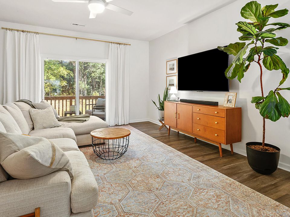 Private deckFreshly painted roomsUpgraded finishesVibrant plant wallProtected woodsLvp flooringCovered patio