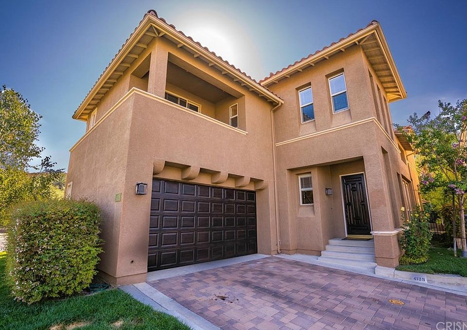 Welcome to Mira Monte, a gated community nestled in the hills of Calabasas. This beautiful 4 bed/ 3.5 bath home, includes access to the community pool and spa. This sophisticated 3,324 square feet home comes equipped with solar panels and it features beautiful hardwood flooring throughout lower level and open-floor plan living/dining rooms. Main living room has a gorgeous dual-sided fireplace that also faced the family room on the other side, large windows for natural lighting. There is a family room right next to the kitchen which makes it perfect for entertaining. Upstairs you will find bonus space, perfect for another family room and loft area, great for an office. All bedrooms are upstairs, including the beautiful master suite with master bathroom, great for relaxation in the spa tub. Take a step outside to the patio and gather around the outdoor fireplace. The bar and BBQ are perfect for year-round entertaining surrounded by a lush green landscape. Directly across from the home you will find the neighborhood park with big grassy area. Easy access to canyons/freeway, nearby neighborhood restaurants, and shopping. Calabasas/Agoura community center is just around the bend, plus city owned parks, and the Santa Monica mountains w/ hiking and bike trails. Award winning Las Virgenes school district.