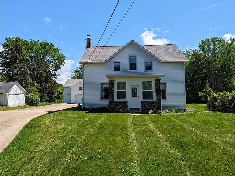 Be the first to view this fantastic home in Millcreek Township! This property is zoned for mixed-use. Situated on 3.91 acres of stunning landscape, this home is perfect for a single-family dwelling with an in-law suite. The first floor features a breezeway, kitchen, dining room, two bedrooms, a full bathroom, and an enclosed front porch. Upstairs, there are two more bedrooms, a kitchen, a living room, a bathroom, and a dining room. The exterior also includes a barn/garage and a storage shed. Welcome home!