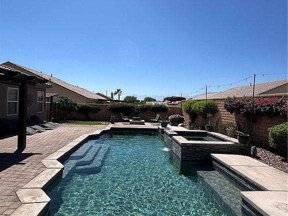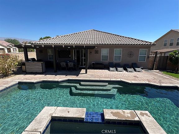 Welcome to your dream pool home in the exclusive Foxstone community of Indio! This beautiful 3-bedroom, 2-bath residence offers 2,080 sq ft of stylish living space and is completely move-in ready. Situated on a spacious corner lot of over 9,500 sq ft in a quiet cul-de-sac, this home is designed for the ultimate desert lifestyle. With meticulous attention to detail, the property features a lushly landscaped front yard and elegant pavers in the backyard. Step inside to find bright, airy formal living and dining rooms that invite natural light. The chef’s kitchen seamlessly connects to the open-concept great room, making it perfect for entertaining. Features included: tile flooring, carpet, ceiling fans, and a stunning built-in media center.