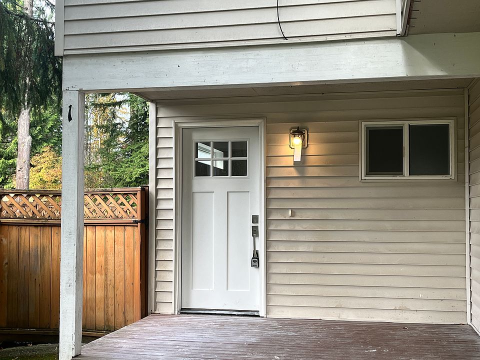 Thanks for your interest! Please call or text to request an in-person or video tour. Fully remodeled throughout with newer kitchen and appliances. Great location with plenty of parking in over-sized driveway and garage with additional space for storage. Fenced backyard and large deck are great for outdoor living and entertaining. Main level features soaring ceiling in main room, open floor plan and circular flow. Three large bedrooms on upper floor with updated hall bath. Bathroom on main includes new shower. First Month + Last Month + SecDep (full or installment) for move-in. All applicants must pass TransUnion SmartMove screening at a cost of $47 per person.