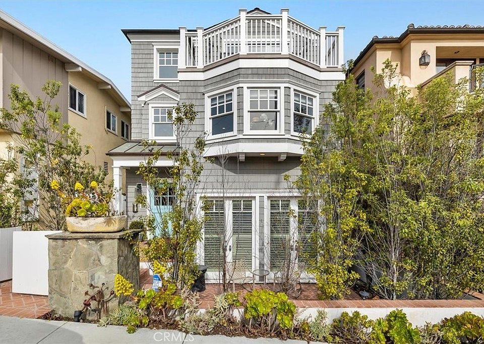 This stunning home located in the North Hermosa Beach Sand Section, exudes East Coast charm and quality with Cape Cod design, white windows and doors, and copper eaves and rain gutters. It’s prime location, on the widest street in the neighborhood with parking on both sides, with just one block to Valley Park, and three blocks from the beach provides an unbeatable outdoor beach living experience. The spacious floorplan includes 3662sf, 4 bedrooms, 4.5 baths, perfect for families or those who enjoy entertaining guests. The interior features hardwood floors, built in custom cabinets, and high end tile and marble finishes. The kitchen is a chef’s dream with Viking appliances, Carrera marble countertops, center island and a walk in pantry. The living room is South facing, boasts an oversized walk-in closet and a luxurious spa bath with a freestanding bathtub and marble basketweave custom tile floor. The downstairs level includes a separate bedroom and bath, as well as an additional family room with access to the patio. The home is equipped with air conditioning, and sits high above its neighbors capturing tremendous natural light and ocean breezes. The A/C is there providing ultimate comfort on the hottest days. The rooftop deck offers stunning 360 degree views and refreshing ocean breezes. The location is a convenient walking distance between both downtown areas of Manhattan and Hermosa Beach, and steps to Slay Hermosa, The North End, Boccatos, Brothers Burritos, Martha’s and The Bottle Inn. Live the dream beach lifestyle, park your car and walk everywhere.