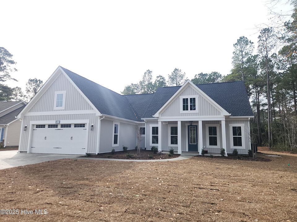 Exquisite new farm house 3 bedroom, 2 bath, and flexroom custom designed home located in Carolina Shores North. Upon entering the home you are welcomed by the grand foyer which features a shiplap ceiling with contrasting paint color and custom trim. There is an office/flex room off of the foyer/living area. The kitchen offers quartz countertops, stainless appliances, a slide in convection oven with air fryer mode, stainless farm sink, white herringbone subway tile backsplash , under cabinet lighting, and a huge pantry with custom wood shelving. The dining area off the kitchen is beautifully finished with high wainscotting and heavy crown molding. Nice covered porch off the dining area that overlooks the fully sodded backyard. The living area comes with an electric fireplace with shiplap and custom built-in shelving. The master bedroom has heavy crown molding with trey ceiling and a large walk-in closet with custom wood shelving that leads to the laundry for easy access. The master bath comes with dual vanities, quartz countertops, and custom tile shower. The laundry room is fitted with custom built-ins and cabinets. The oversized garage offers more storage options and comes with an 8' X 18' insulated garage door. Huge floored attic area above the garage. Close to area shopping, restaurants, and medical facilities.