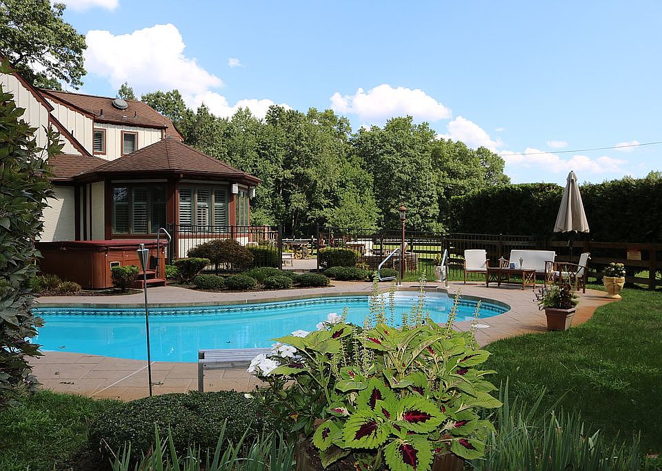 Come View This Stunning Home Set Back With A Private tree lined Driveway as well separate service driveway Perfectly located in desirable In North Howell Bordering Colts Neck and aces to all highways. Sitting On Six Beautiful groomed acres boardering NJ state owned land. Main Home Features 4 Bedrooms,4 Bathrooms,And Has Been Completely Renovated From Top To Bottom,Such As,New Kitchen With Stainless Steel Appliances,Stone Countertops,And Marble Backsplash, New Bathrooms, 4 Zone Hot Water Baseboard And Radiant Heating,Central Air Conditioning,Hardwood Floors Throughout,Anderson Windows With Plantation Shutters,Surround Sound System In Family Room,Wainscoting In Dining Room,Expanded Sun Room With Vaulted Ceilings,Multiple Wood And Gas Fire Places,Covered Porch Off Living Room With large Trex Deck, hot tub, inground salt water heated pool, outdoor kitchen. This property is perfect for entertaining family.