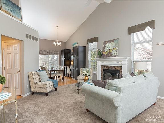 This home boasts a spacious and modern design with plenty of updates and features to make it the perfect home for you and your family. As you step inside, you will be immediately impressed by the high ceilings, wood burning fireplace and custom built-in cabinet in the dining room. An updated kitchen, complete with sleek stainless-steel appliances, Corian® countertops that are perfect for meal prep or entertaining guests. The first floor also includes the primary bedroom and an updated bathroom. Upstairs, you'll find three additional bedrooms, one of which could be used as an office or flexible living space, perfect for those who work from home or need a space for their hobbies or interests. The second floor also includes a full bathroom for your convenience. The finished basement provid provides additional living space with a half bathroom pre-plumbed for a shower, perfect for entertaining or relaxing with family and friends. Outdoors you'll find a large backyard, brick paver patio with stone landscaping as well as a cute little Tree House for the little ones. Located in Dexter Crossing this home offers a great location with easy access to schools, shopping, dining and outdoor activities, Primary Bath, Rec Room: Finished