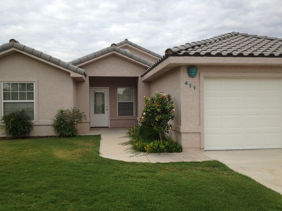 RETIREMENT COMMUNITY 60+Gorgeous 3 BR, 2 BA, Tile roof, ceramic tile throughout. Large laundry, 2-car garage, covered patio, upgraded appliances. Located on the greenbelt, this home backs up to the running stream with waterfall. Beautifully landscaped!