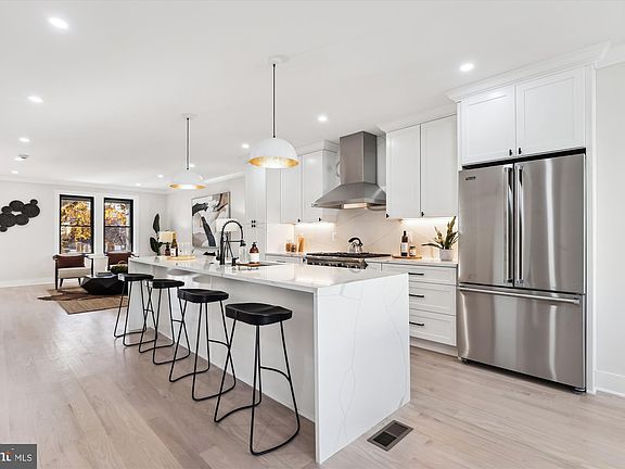 PRICE IMPROVEMENT! Welcome to 411 Decatur Street NW—a stunning Nantucket Investments renovation in the heart of Petworth. Thoughtfully designed and meticulously restored, this home blends modern luxury with timeless details. The showpiece kitchen features a massive quartz-wrapped island, full quartz backsplash, and Viking appliances—truly the heart of the home. Natural oak floors, custom crown molding, exposed brick, iron railings, skylights, and sleek black double-pane windows add warmth and sophistication throughout. Retreat upstairs to a spectacular primary suite with soaring ceilings, custom walk-in closets, a spa-inspired marble bath, and a private deck with breathtaking views of the National Cathedral. The versatile lower level—with its own front entrance, wet bar, and full bath—offers endless possibilities: recreation room, guest quarters, or a private in-law suite. Outdoor living is equally impressive with multiple decks, while secured two-car parking with a commercial-grade roll-up door makes city living effortless. Every detail has been considered—inside and out. Don’t miss this exceptional opportunity at a newly reduced price!