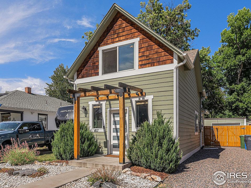 Step back in time with this fully updated and remodeled 1898 Old Town Loveland charmer, offering a perfect blend of historic character and contemporary convenience. This delightful 2 bedroom, 1.5 bathroom home welcomes you with beautiful LVP flooring on the main level and a stunning, gourmet kitchen featuring butcher block counters, an elegant apron sink, and a full suite of stainless steel appliances. The thoughtful updates continue with the added convenience of main floor laundry. Enjoy the Colorado sunshine and mature landscaping on the sprawling, fully fenced lot, which boasts multi-level decks and a charming patio area with a pergola perfect for outdoor dining. The property offers exceptional outdoor utility, including a detached one-car garage, RV/Boat parking via convenient alley access, and the benefit of a south-facing orientation. Located just a few blocks from Loveland's vibrant core, you'll have easy access to parks, trails, shopping, and restaurants, making this the ideal location for a true Old Town lifestyle. This one is a must-see! Showings start Saturday September 27th in the am.