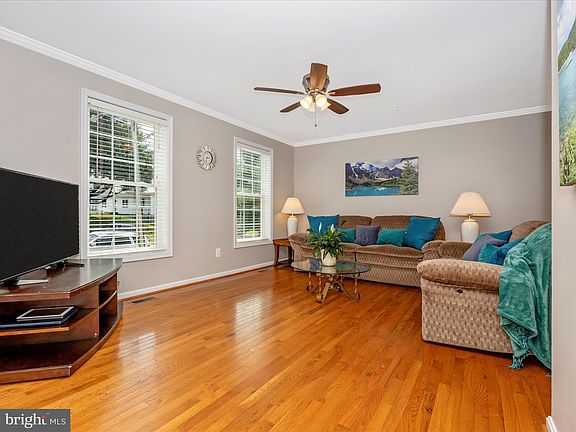 This wonderful colonial is movin-ready with fresh paint and new carpet. Well-maintained this home features a spacious open layout and 2400 sq ft of finished living space on 3 levels. The lot backs to trees with .14 acres and a fenced rear yard with a huge shed 7'7" X 14'10". Enjoy quiet mornings on the covered front porch. The main level features hardwood floors and crown molding throughout, a living room with a ceiling fan, a spacious formal dining room, a large kitchen with plenty of room to entertain, stainless steel appliances, granite countertops, a walk-in pantry, breakfast area, and sliders to a large deck (28'5 X 11'8') which has been freshly stained. The upper level features 3 spacious bedrooms all with ceiling fans with lights and 2 full baths. The primary bedroom features a tray ceiling, a walk-in closet, a private bath with dual vanities, and a shower with dual seating. The lower level features a large family room with a ceiling fan and light, with sliders to the backyard, a 3rd full bath, and 4th bedroom with a large closet and ceiling fan with light. In front, there is a concrete parking pad for 2 cars. The roof has architectural shingles with Energy Saving Solar Panels on a power purchase lease a wonderful energy-saving feature of this home. Located less than 10 minutes to grocery, restaurants, MARC commuter train, C/O canal, Potomac River, Brunswick community pool, tennis, playgrounds, Middle & High Schools and so much more! A wonderful home you will be proud to call your own!