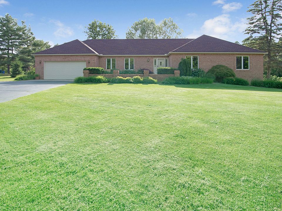 Welcome Home! This all brick custom ranch home is meticulously maintained by the original owner/builder. Featuring 4 bedrooms, 3 full baths and craftsmanship that you just don't see anymore! The location is perfect, situated on 2 beautiful acres, no HOA here. Within 2 miles of shopping, freeway and hospital. New roof in 2016, and all mechanicals are approx. ten years old with lots of life left. Enjoy the heated jetted tub, sauna shower, custom brick bar, the fully finished walkout with lots of daylights, and custom brick fireplace. Over 3500 sq. ft. of living space. The seller only cuts about an acre, the woods to the north are left natural for added viewing enjoyment. When you get in to view it, make sure you look in garage at hidden door, there is a room that houses the lawn tractor and equipment, freeing up the garage for parking! Must see home!