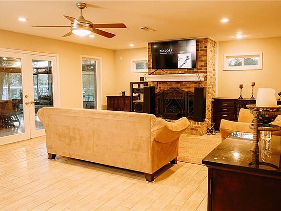 Beautiful home that you can just move right in! Ceramic tiles look like wood planks all throughout house. Kitchen w/big island/breakfast bar, can serve as dining table. Big, open & airy den. Den leads to aired & heated sunroom through central air & heating system + wall unit. Half of garage converted to aired & heated playroom with sink. Backyard is to die for, beautiful refinished expansive wooden deck leading tocovered dock w/view deck. Perfect for annual boat parade.