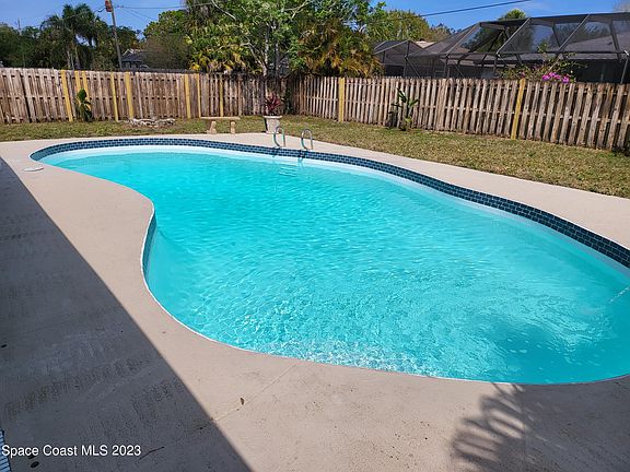 MULTIPLE OFFERS RECEIVED. Beautifully renovated, bright 3/2 pool home  with a 2-car garage in Palm Bay!  This open concept home features vinyl plank flooring throughout, granite countertops in kitchen, separate dining room and breakfast bar. Oversized patio and sparkling pool are perfect for entertaining! Kitchen and Master Bedroom both have sliding doors that lead to the patio and a large 30'x15' 9' deep pool. This home also has a separate living area/parlor with a slight step down. Hall bath has unique arched entrance to the bath/shower.   This gem won't last long--schedule your showing today!