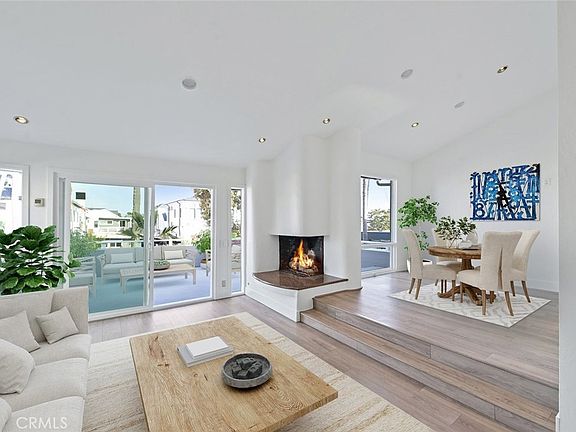 Welcome to 411 Goldenrod, Corona Del Mar a beautifully updated coastal home offering 3 bedrooms + den and approximately 1,900 sq ft of elevated living space. Completed in June 2025, this home now features a fresh, modern look with brand-new flooring, paint throughout, a new patio slider, updated faucets, refrigerator, lighting, and more.Step into a bright, airy living room with soaring cathedral ceilings, a cozy fireplace, and abundant natural light. The remodeled kitchen includes a central island, built-in cabinetry, and opens to a formal dining area perfect for entertaining or enjoying quiet family dinners.The primary suite is a true retreat, complete with high ceilings, a fireplace, skylight, and ample space.