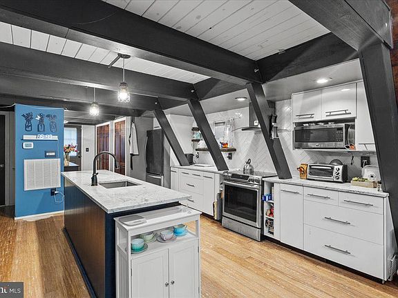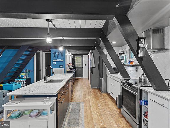 AMAZING HOME ALERT! This A frame has it all including an updated kitchen and bathroom. Magnificent tall ceilings display the wood craftmanship of this unique home. Walk into the open space and view the vaulted ceilings. The main level features an updated kitchen, updated bathroom, bedroom, large family room, and dining area. The laundry is located on the main level. Walk up the stairs to the second level oasis which includes a large living space and bedroom with large oversized walkin closet. For the car enthusiasts there is a large oversized 2 car garage and the property has a large lot which backs to trees. All offers are due by 08/20/2023 4pm today!!!!!!!!!!!!!!