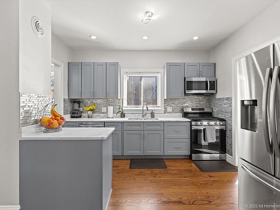 Stunning home in sought after Riverside on a Massive 251 Foot Deep Lot!!!! Near expressways, commuter train, restaurants and shopping! Beautifully and lovingly rehabbed by current owners in 2022! All the charm of a vintage home with all of the modern conveniences for today's discerning buyers. No expense has been spared, including the Beautiful Coffered Ceilings and Gorgeous Accent Wall in the living room with the Stunning Electric Fireplace; New Windows Throughout the Home; New Hardwood flooring on the Main and Second level and in the Stunning Entry Staircase; All New Electrical System Which Includes Recessed Lights throughout the Home, Including the Basement. New Plumbing, including service lines and fixtures; New HVAC; All New Kitchen Cabinetry and Massive Island with Quartz Counter Tops. The walk out basement has been meticulously finished and boasts beautiful Designer Epoxy Flooring throughout, including in the beautifully designed 3rd bathroom; in addition, there is a generously sized bonus room that can be your office; Brand new garage door. Enjoy your leisurely evenings in the generous sized front porch or in your enormous professionally landscaped and fenced backyard with plenty of space for your entertainment including a quaint side yard with a paver patio that leads to your serenity oasis. You won't be disappointed with all that this beauty has to offer!
