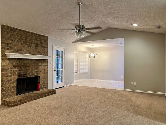 Brick fireplaceCeiling fansTwo car garageAll kitchen appliancesLarge closetsLarge fenced in backyard