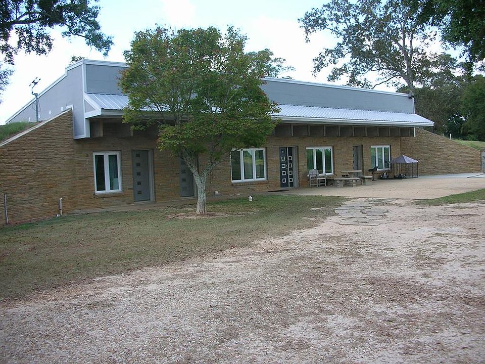 This remarkable home is an in ground home, it has earth on back and two sides but open at front and has a sheet metal roof covering the concrete tops of double tee pre stressed beams. The interior has been well decorated to enhance the type of construction of he home. It is surrounded by 27 acres of fenced rolling pasture which has a scattering of large oaks of several varieties. This is a must see home. Southern Ag Credit will finance for 15% down.