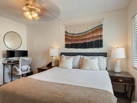 Own your slice of paradise with this renovated 1 bedroom, 1 bathroom leasehold condo in the heart of Waikiki! 411 Kaiolu is a hidden gem, and it's pet friendly! Oven and glass cooktop, LVP flooring, fresh paint throughout, and blinds in each room done in Aug 2023. The unit also has a split AC, ceiling fans, good closet space, and it's an end unit with lots of light! Unit comes furnished. Enjoy the sunny pool and community laundry. This is a boutique building in Waikiki but on a less busy side street, it's convenient to walk to Waikiki beaches, shops, restaurants, and many bus lines. The long land lease allows for a 15- or 20-year mortgage. May be possible to rent parking nearby. Request at least 48 hours' notice for showings due to tenants.