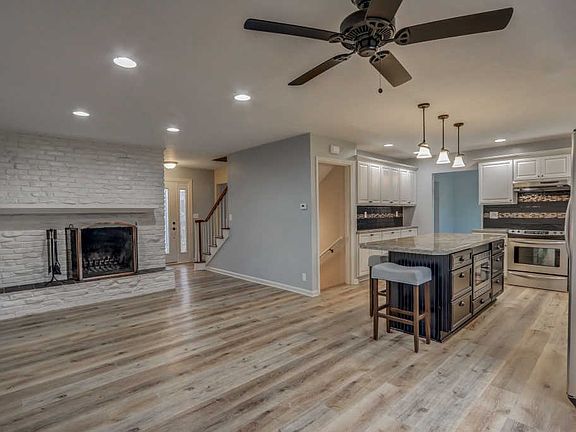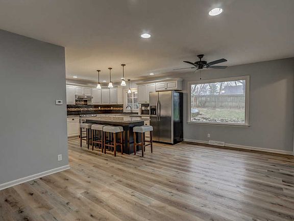 Check out this recently remodeled home with lots of square footage situated in a quiet, partially wooded north side location! Upon entering you will find a foyer to meet your guests. To your left is a spacious living room with carpet, ceiling fan, several windows to allow for tons of natural light and is open to the dining room. The dining room is open to the kitchen that features a beautiful laminate counter-top with a glass back-splash, a huge breakfast bar with pendant lighting and is open to the family room. The family room offers wood like laminate floor, recessed lighting, built in wood fire-place to keep you cozy on those cold winter evenings. There is a main level master suite that has wood laminate flooring, ceiling fan, walk-in closet and a master bathroom. To round out the main level there is a 1/2 bathroom and a built in bench seat with hooks to accommodate putting on your shoes. Upstairs there are 2 generous sized bedrooms and a full bathroom. The basement is partially finished with a huge area that would make a perfect man cave, play/rec room or gym area! There is so much space you will have plenty of room for any extra storage you may need. Step out back to the open patio with a fire-pit, this area makes a perfect place to entertain. This home also has a 2 car attached garage.
