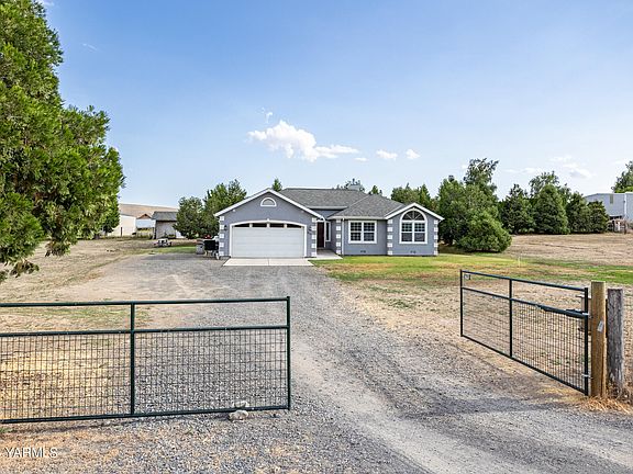 Welcome to your dream retreat! This charming 3 bedroom, 2 bath home on a generous 1.4-acre lot offers the perfect blend of convenience, tranquility, and modern amenities. Located in a coveted area close to the town of Selah, this gated property provides the ideal setting for those seeking a peaceful country lifestyle. As you step inside, you'll be immediately captivated by the warmth and character of this delightful home. The new wood floors throughout exude a sense of timeless elegance, while the abundance of natural light creates an inviting and airy atmosphere. The heart of the home lies in the spacious living area, where you can relax and unwind while enjoying picturesque views of the surrounding natural beauty. The well-designed floor plan maximizes space and functionality, providing both comfort and convenience for everyday living. The generously sized bedrooms offer a peaceful sanctuary for rest and relaxation. The master bedroom features an en-suite bath, ensuring a private retreat where you can rejuvenate after a long day. The additional bedrooms are perfect for family members, guests, or even a home office or hobby room, providing flexibility to suit your needs. This property boasts hard line internet connectivity, providing reliable and fast internet access for all your online needs. Additionally, the 225-foot deep well with a 60 gallons per minute capacity ensures a plentiful and consistent water supply. For your comfort, the house features a propane hot water heater, delivering efficient and reliable hot water throughout the home. The property also includes irrigation, ready for maintaining the lush greenery that surrounds your home. Please note that an irrigation pump is needed to fully utilize the irrigation water. The expansive property offers endless possibilities for outdoor activities, a new shop or simply enjoying the fresh country air! Schedule a private showing today and experience the peaceful country lifestyle that awaits you!