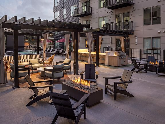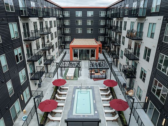 - Exterior features: Balcony, Bike Repair & Storage, Cantina, Car Wash, Club Room, Convenient Access to Numerous Grocery Stores, Courtyard, Electric Vehicle Charging Available, Free Metro Transit Go-To Card, Golf & Game Simulator, Hub Rooms, Large Coworking Space, On-Site Maintenance, On-Site Management, Outdoor Movie Screen, Package Receiving, Pet Park, Pet Washing Station, Public Transit, Sound Proof Pods, Stainless Steel Appliances, Work From Home Suites