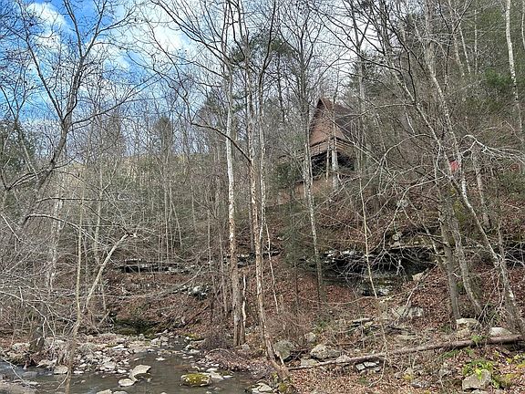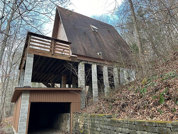 The Hideaway. Escape to a crystal clear creek along a natural stone face cliff, surrounded by forest, perched for a mountain view, and hidden on ~40 acres. The quaint A frame designed house blends into the forest and overlooks the creek and treetops. The ~1,070 sq ft house features an open floor plan, loft bedroom, galley kitchen, propane fireplace, and, most importantly, 12' X 30' deck. The house is built on cinderblock piers and has 2 entrances. Beneath the house is a garage/storage area. Nice utility outbuilding. House needs some repairs and updates, but good ''bones.'' ~40 acres provides a steep solid backdrop for the property. ~ 0.1 mile creekfront, good swimming/ play areas; level path along the creek. Private entry road with concrete bridge. Excellent parking. Located in Summers County, in the Forest Hill area and minutes to the Greenbrier River, The Hideaway is a perfect setting for anyone seeking nature, a beautiful creek, and privacy. Hinton, WV is the county seat; Lewisburg, a wonderful arts and recreational community is approximately 1 hour; New River Gorge National Park is 1 hour; plus, multiple state parks, a ski resort, and conveniences from I77 and I64.
