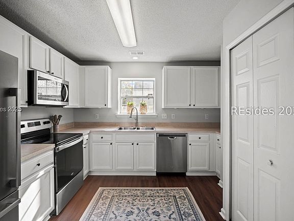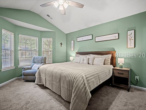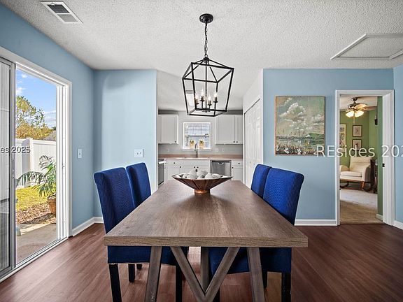 Welcome to this darling one-level Edgefield home featuring 3 bedrooms, 2 bathrooms, and 1,132 sq. ft. of comfortable living space. The open-concept layout with cathedral ceilings creates an airy, spacious feel, while the smart bedroom separation offers privacy for family or guests. Beautiful vinyl flooring runs throughout the main living areas, combining style with easy maintenance. Enjoy the fenced backyard-perfect for pets or outdoor gatherings-and take advantage of the community amenities including a sparkling pool and playground. Ideally located in the heart of Bluffton, just minutes from Old Town and a short drive to Hilton Head Island's beaches, dining, and shops. This sweet home is one you don't want to miss!