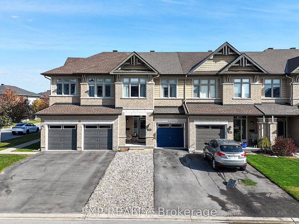 Welcome to 411 Livery Street - a beautifully upgraded 3+1 bedroom, 3-bath townhome offering the perfect blend of style, comfort, and convenience. Built in 2014 by Richcraft Homes, this popular Addison model showcases premium finishes and thoughtful design throughout. Step inside to discover gleaming maple hardwood floors on the main level, complemented by elegant ceramic tile in the entry and powder room. The bright, open-concept kitchen features stunning granite countertops, stainless steel GE appliances (including a slide-in gas range and fridge with water line), and ample storage - perfect for the family chef. The inviting family room boasts a cathedral ceiling and a stone-surround gas fireplace, creating a warm and impressive space to relax or entertain. Upstairs, the spacious primary suite offers a walk-in closet and private ensuite, while two additional bedrooms provide flexibility for family or office use. The fully finished basement includes a legal 4th bedroom, ideal for guests, teens, or a home office setup. Enjoy outdoor living in your private, low-maintenance backyard, complete with full deck and hot tub - perfect for year-round enjoyment. Located just minutes from top-rated schools, shopping and amenities along Hazeldean Road, Stittsville Village, Tanger Outlets, and the Canadian Tire Centre, this home offers both tranquility and connectivity in one of Ottawa's most family-friendly neighborhoods.