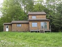 Many possible uses for this Contemporary style house on 12+ acres of privacy. Open floor plan w/woodstove, full bath w/jacuzzi tub, mudroom, 1st flr bdrm has seperate access; 2nd flr is loft style w/full bath; full basement w/potential to finish. Several sheds/outbldgs. Creek runs in back of property. Over 1000 ft of road frontage.