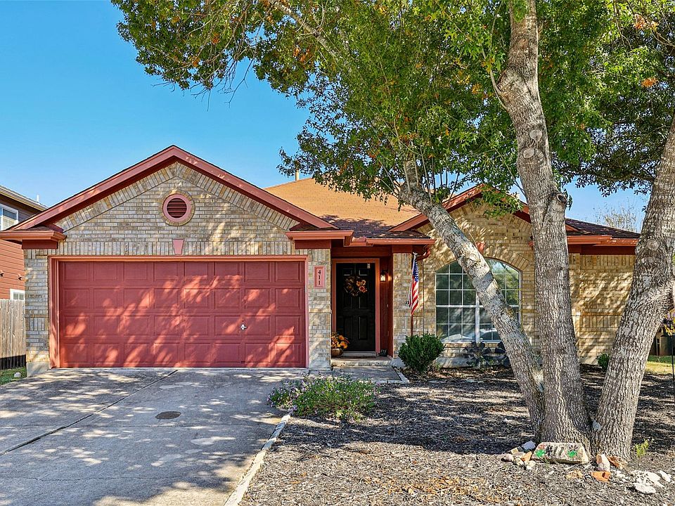 Charming single-story 3-bedroom, 2-bath home nestled in a peaceful Kyle neighborhood just 2 minutes from I-35. Located on the same electrical grid as the nearby hospital, this home benefits from reliable power and prioritized outage restoration. The spacious primary suite features dual vanities, a walk-in shower, and a linen closet, while both secondary bedrooms offer generous walk-in closets. The open kitchen, dining, and living layout creates a welcoming flow, with a cozy corner fireplace and negotiable furniture adding extra appeal. Additional highlights include decorative entryway trim, a serene screened-in patio perfect for relaxing, a large storage shed, a fenced backyard with plenty of space for activities, and beautiful mature trees. The home also comes equipped with a water softener, rain gutters, and a well-landscaped front yard. Enjoy easy access to HEB Plus, hospitals, Target, and an abundance of dining and restaurants.