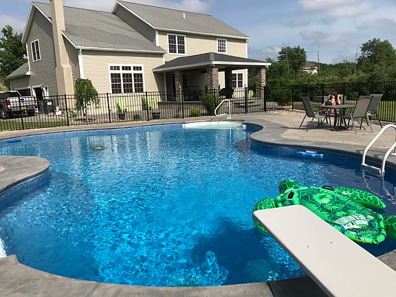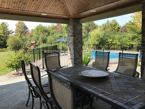 Beautiful center hall colonial on 3 acre lot. Total privacy in a quiet neighborhood setting. Floors are all hardwood and tile upstairs and down. Dramatic 2 story family room that opens up to a huge gourmet kitchen with large center island. Venetian plastered walls complete the downstairs kitchen and family room and extend to the 2 story foyer and family room. Large master bedroom with vaulted ceiling. Grand master bath with double sinks separate toilet room and doorless walk in shower with jets and big enough for 2. Walk in closet with custom cabinets. 3 car garage. Finish basement with half bath and walk up entrance from garage. 20 x22 covered blustone veranda with full foundation stone skirt and pillars. 40x30 inground heated pool with extensive colored concrete surround.