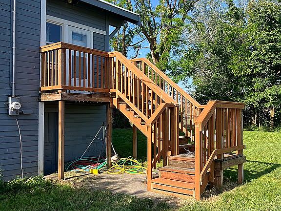 Craftsman style home built in 1917, was a kit home. Complete remodel in 2013, new plumbing, wiring, windows, kitchen with maple cabinets and floors along with 2 additional bathrooms , new porch, stairs and railings, new metal roof and trusses on the carport. Repainted in 2014. Beautiful original woodwork with bay window in the dining room, original pine flooring in 80% of the house. This beautiful home is on almost one acre of land on a corner lot, horses permitted. Just added new two car garage with a workshop. 1200 ft.² with a bathroom, Frame built, insulated and with drywall. So many possibilities for use with this building, workshop, business, garage, additional living space. It is on its own septic system and electrical but shares a well with the house. There is also a one and a half car attached carport. And if you don’t have enough space there, there’s a full unfinished basement, it has poured walls and poured floors, it is a daylight basement with two doors one going to the backyard and one going to the carport. Storage galore, laundry room is in the basement with a utility sink. They just don’t build homes like this any longer. Turn of the century charm with amazing woodwork and lots of character! This is a family home, not fancy but very inviting and warm and comfortable. The home has forced air electric heat that we use as a back up for a wonderful woodstove. We are located in the desirable Centerville school district, two doors down actually, the kids can walk to school.